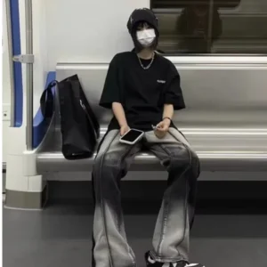 ●Features: Button, Pocket, Zipper, Denim, High Waist, Wide Leg, Fashionable